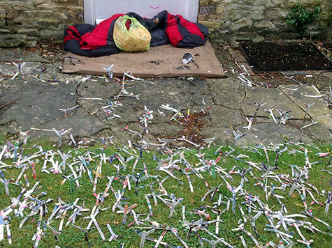 This installation draws attention to the many rough sleepers and homeless