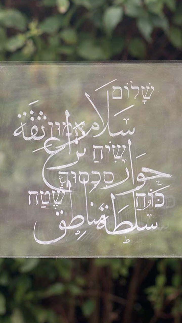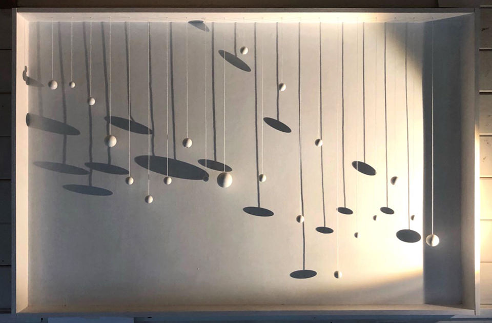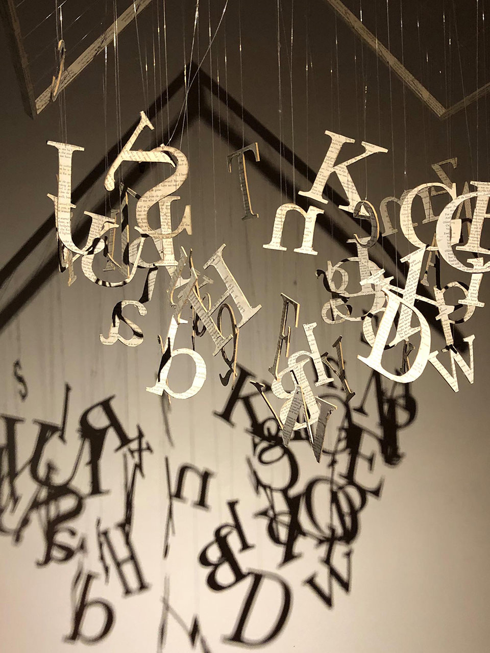 an expert on Yeats. The suspended letters are cut out from board covered